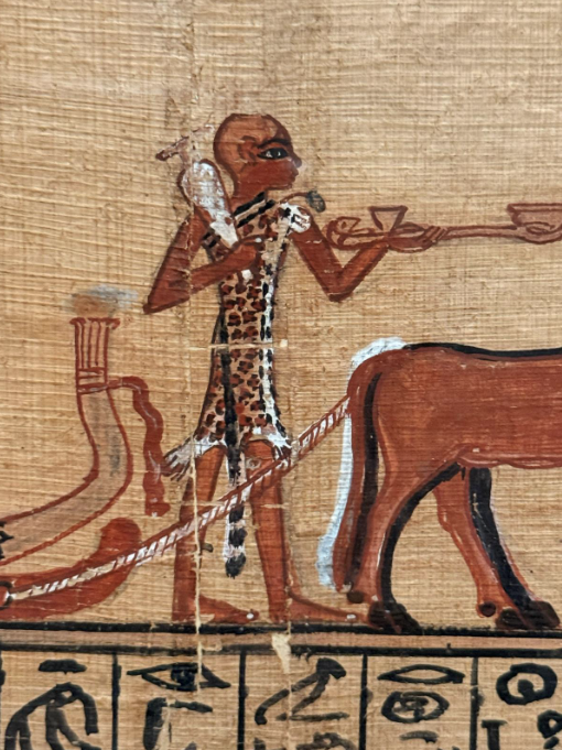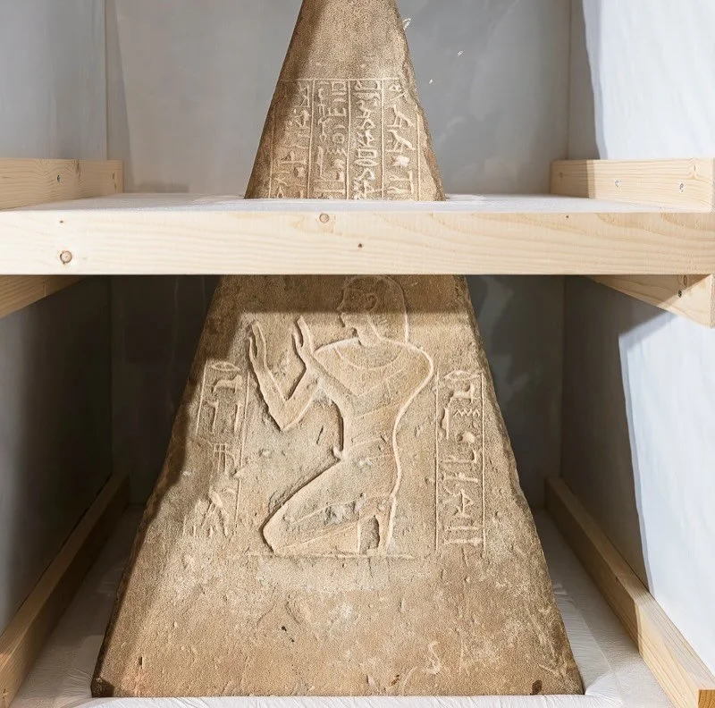These are the pyramidion bearing the name of Kha, from the collections of the Musée du Louvre, and the Book of the Dead of Merit from the Bibliothèque nationale de France.